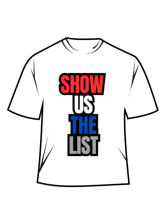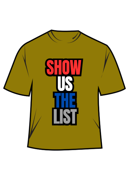 Show your support in style with the "Show Us The List" product line. A bold statement demanding the release of the Epstein Files and accountability from world leaders, politicians, and CEOs. We the people insist that no one is above the law and that the government be held responsible for the lies being told. Proudly made in the USA, these products reflect your commitment to justice and transparency. Demand accountability and wear your values with pride. Join the movement today